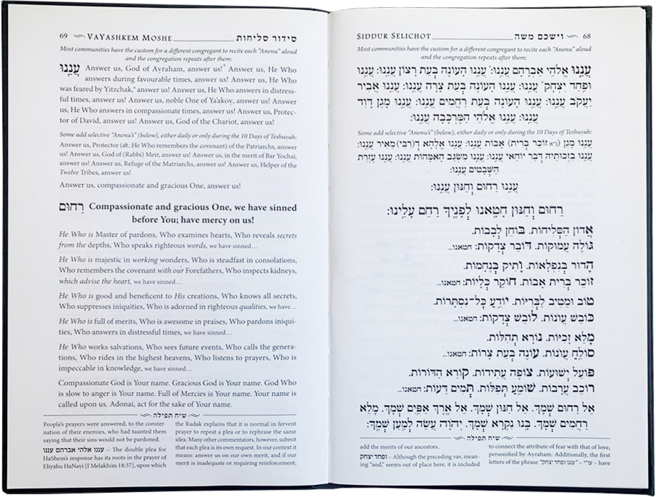 All prayers feature a unique English translation, running commentary, inline instructions, and prayer laws.